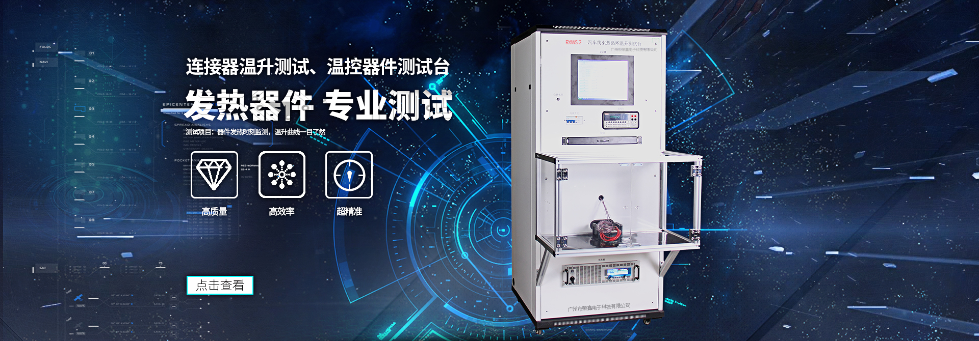 廣州市榮鑫電子科技有限公司坐落于美麗的花城廣州,公司自2002年成立以來,憑借雄厚的技術(shù)實(shí)力和速捷的配套生產(chǎn)能力,以及良好的信譽(yù),贏得了全國多家著名企事業(yè)單位的青睞。公司現(xiàn)推出八大系列產(chǎn)品:溫度溫升測(cè)試儀系列、產(chǎn)品安全測(cè)試系列、負(fù)載柜系列、電容器測(cè)試系列、鎮(zhèn)流器、觸發(fā)器測(cè)試系列、LED燈具測(cè)試系列、電機(jī)、壓縮機(jī)測(cè)試系列、家電測(cè)試系列,供客戶選擇。 一直以來我們專注高端產(chǎn)品,拒絕平庸,致力打造智能、人性化的檢測(cè)設(shè)備,以客制化定制為服務(wù)中心,理性的引用客戶的要求與建議,滿足客戶需求為己任。同時(shí)我們?cè)诮?jīng)營理念上:以精、誠的精神為方針,以為客戶提供先進(jìn)高端產(chǎn)品與優(yōu)質(zhì)服務(wù)為宗旨,從而與客戶取得共贏!這都源于我們的定制服務(wù)。公司擁有專業(yè)的研發(fā)團(tuán)隊(duì)、專業(yè)的銷售團(tuán)隊(duì)及專業(yè)的售后服務(wù)團(tuán)隊(duì),...